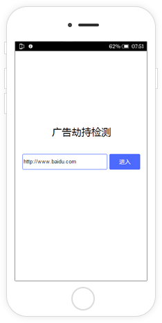 下载广告劫持检测工具后,在App首页输入被劫持网址,打开页面,开始对页面进行分析检测