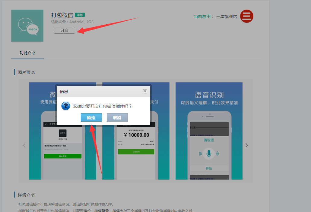 2、新创建的应用,支付宝支付新版插件默认是关闭状态,可以进入支付宝支付新版详情页面点击【开启】按钮。