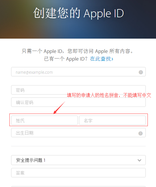1. https://appleid.apple.com/#!&page=signin 点击右上角【创建您的APPID】按钮或者点击此界面下方的【建立您的Apple ID】进入注册信息界面。