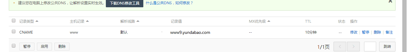 第一步:请将需要绑定的域名以CNAME的方式解析至 www9.yundabao.com