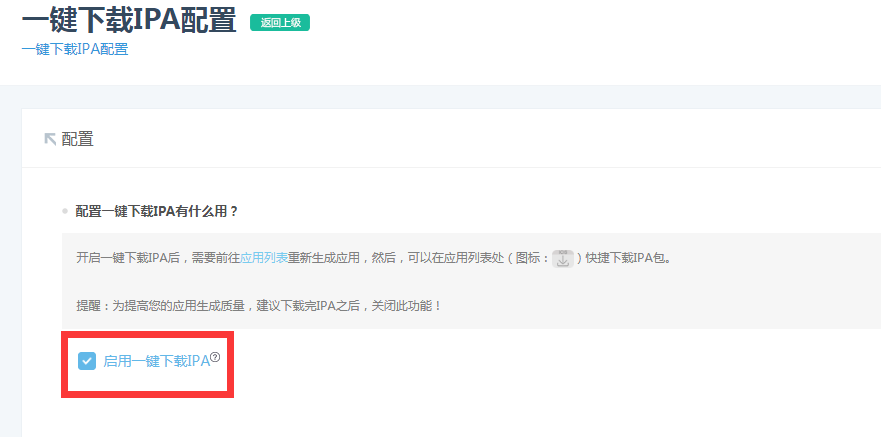 勾选启用一键下载ipa